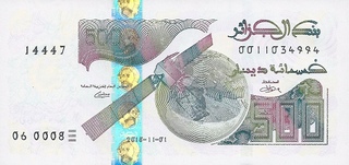 Bancnote pentru vanzare sau schimburi din Algeria; numerele de culoare albastra denota pretul in lei noi iar numerele rosii reprezinta numarul de ordine in catalogul Pick. Toate bancnotele din aceasta pagina sunt necirculate. Click pe o imagine pentru a o mari.