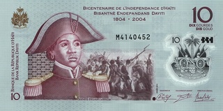 6.95 10 Gourdes 2004-2018 (comemorativa: Haiti 200 de ani; hartie)