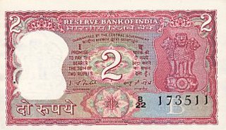 9.90 2 Rupii (nedatata; cifra 2 centrata; revers: tigru; numele bancii in hindi in randul de sus)
