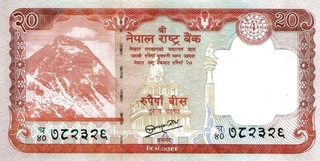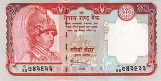 10.70 20 Rupii (nedatata; Gyanendra; text mutat spre sus)