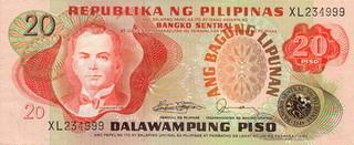 11.70 20 Piso (nedatata; Ang Bagong Lipunan; sigiliu '49 predominant alb)