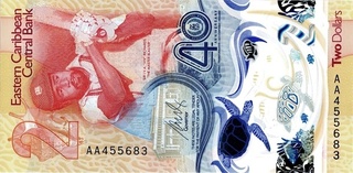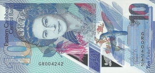 Bancnote pentru vanzare sau schimburi din Statele Est Caraibeene; numerele de culoare albastra denota pretul in lei noi iar numerele rosii reprezinta numarul de ordine in catalogul Pick. Toate bancnotele din aceasta pagina sunt necirculate. Click pe o imagine pentru a o mari.