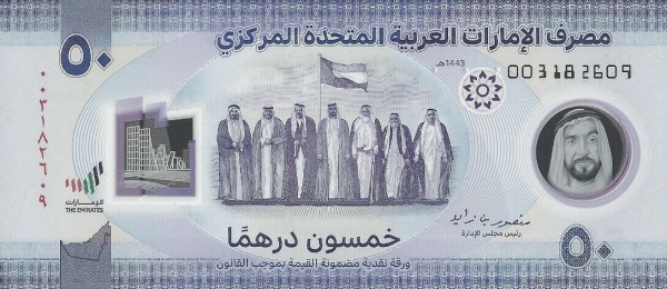 468. Emiratele Arabe Unite 26 19.00 NECIRCULATA 5 Dirhams 2009-2017 469. Emiratele Arabe Unite 27 34.30 NECIRCULATA 10 Dirhams 2009-2017 470. Emiratele Arabe Unite 28 56.80 NECIRCULATA 20 Dirhams 2009-2016 471. *nou* Emiratele Arabe Unite 35 105.20 NECIRCULATA 50 Dirhams 2021 (polimer; comemorativa: 50 ani EAU) 472. Emiratele Arabe Unite 36 12.90 NECIRCULATA 5 Dirhams 2022-2024 (polimer) 473. Emiratele Arabe Unite 37 24.90 NECIRCULATA 10 Dirhams 2022-2024 (polimer)