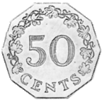 2877. Zimbabwe 5 7.95 NECIRCULATA 50 cents 1980-1997 (cupronichel)
