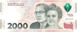 5.95 100 Pesos (nedatata; circa 2012; comemorativa: Eva Peron) (circulata)