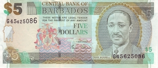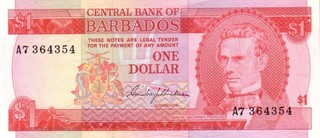Bancnote pentru vanzare sau schimburi din Barbados; numerele de culoare albastra denota pretul in lei noi iar numerele rosii reprezinta numarul de ordine in catalogul Pick. Toate bancnotele din aceasta pagina sunt necirculate. Click pe o imagine pentru a o mari.
