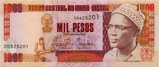Bancnote pentru vanzare sau schimburi din Guineea Bissau; numerele de culoare albastra denota pretul in lei noi iar numerele rosii reprezinta numarul de ordine in catalogul Pick. Toate bancnotele din aceasta pagina sunt necirculate. Click pe o imagine pentru a o mari.