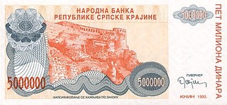 12.95 5 milioane Dinari 1993 (Krajina - Knin)
