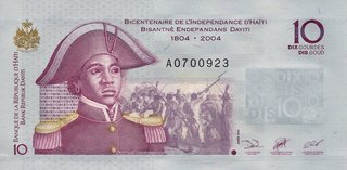 4.95 10 Gourdes 2004-2018 (comemorativa: Haiti 200 de ani; hartie)