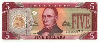7.90 5 Dolari 2003-2011 (revers: Central Bank of Liberia)