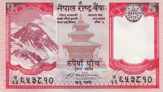 8.50 5 Rupii (nedatata; Gyanendra; portret rosu)