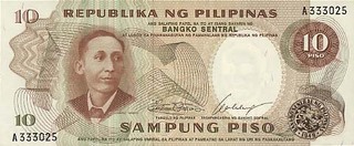 11.70 10 Piso (nedatata; Ang Bagong Lipunan; sigiliu '49 predominant alb)