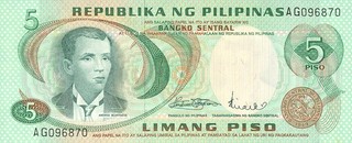19.95 5 Piso (nedatata; margine tiparita; fara Ang Bagong Lipunan)