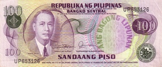 30.60 100 Piso (nedatata; Ang Bagong Lipunan; sigiliu '49 predominant negru)