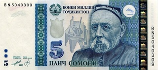 11.70 5 Somoni 1999 (a doua versiune, cu banda holografica; tiparita in 2013)