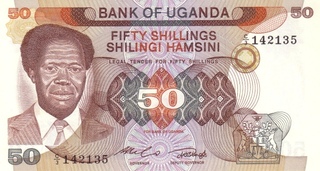 12.90 50 Shillings (nedatata; Milton Obote; circa 1985)