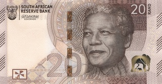 15.40 20 Rand (nedatata; Nelson Mandela; cu champagne dots; circa 2013-2016)