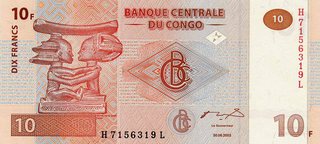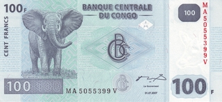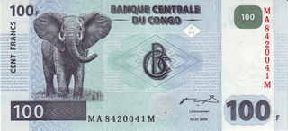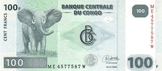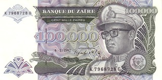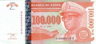 19.95 100 mii Nouveaux Zaires 1996 (portocalie; tipograf: Hotel des Monnaies)