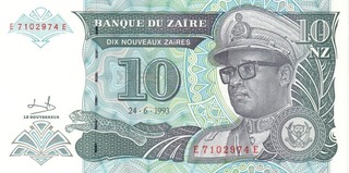 11.95 10 Nouveaux Zaires 1993 (tipograf: Hotel des Monnaies)
