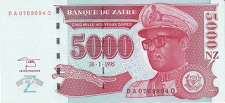 14.95 5000 Nouveaux Zaires 1995 (tipograf: Hotel des Monnaies)