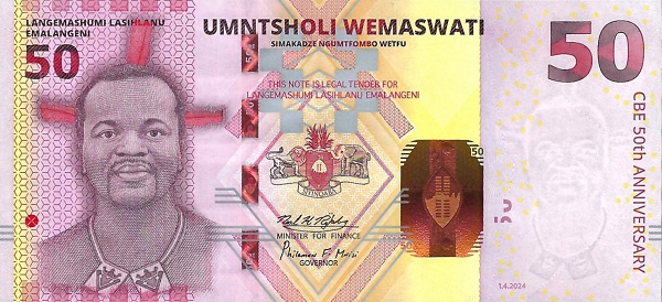 15. Africa de Sud 140 23.95 (circulata) 50 Rand (nedatata; Nelson Mandela; cu champagne dots; circa 2013-2016)