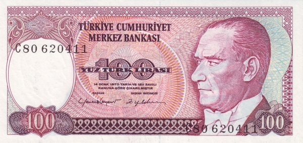 Turcia 206 6.95 (circulata) 100 mii Lire (nedatata; fara element de siguranta in dreapta-sus)