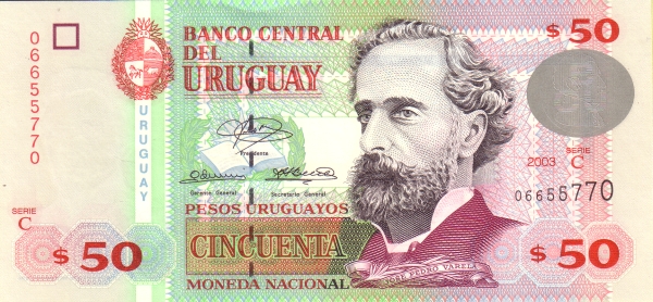 1878. *nou* Uruguay 47 26.95 NECIRCULATA 100 Pesos (nedatata; circa 1967) 1879. Uruguay 61A 9.90 NECIRCULATA 50 Nuevos Pesos (nedatata; circa 1988-1989; cu portret tiparit in filigran) 1880. *nou* Uruguay 80 12.95 (circulata) 5 Pesos Uruguayos 1998 1881. Uruguay 86 19.00 NECIRCULATA 20 Pesos Uruguayos 2008-2011 1882. Uruguay 87 26.60 NECIRCULATA 50 Pesos Uruguayos 2008-2011 1883. Uruguay 88 59.30 NECIRCULATA 100 Pesos Uruguayos 2008-2011 (filigran: Fabini; fir de siguranta lat) 1884. Uruguay 100 23.50 NECIRCULATA 50 Pesos 2017 (comemorativa: 50 de ani Banca Centrala; polimer) 1885. *nou* Uruguay 101 9.30 NECIRCULATA 20 Pesos Uruguayos 2020 (polimer) 1886. *nou* Uruguay 102 11.70 NECIRCULATA 50 Pesos Uruguayos 2020-2021 (polimer)