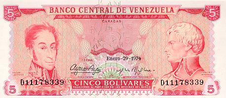 1917. Venezuela 50 12.95 NECIRCULATA 5 Bolivares 1968-1974