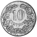 451. Elvetia 3a 4.95 (circulata) 1 centime 1942-1946 (zinc) 452. Elvetia 26 0.95 (circulata) 5 centimes/rappen 1906-1978 (cupronichel; retras) 453. Elvetia 26c 0.95 (circulata) 5 centimes/rappen 1980-2013 (aluminiu-bronz)